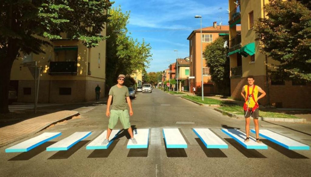 “Le strisce sono quelle previste dal codice della strada, di cinquanta centimetri per due metri e mezzo – ha spiegato il primo cittadino del comune bolognese -. Inoltre chiunque passi di li, sia che arrivi dal marciapiede che dalla carreggiata, non le vede come in foto. Vede delle strisce praticamente normali. Solo in un punto di fuga prospettico preciso, le strisce appaiono in rilievo come si vede in foto”. In tanti hanno commentato le strisce fluttuanti sui social e qualcuno ha persino ipotizzato che possano essere pericolose per la sicurezza: “La strada in cui abbiamo realizzato le strisce è residenziale – ha detto il sindaco -, le auto non passano a più di trenta chilometri l’ora. E comunque si tratta di un’opera temporanea, che abbiamo realizzato nell’ambito di un più ampio progetto di street art”. (…)