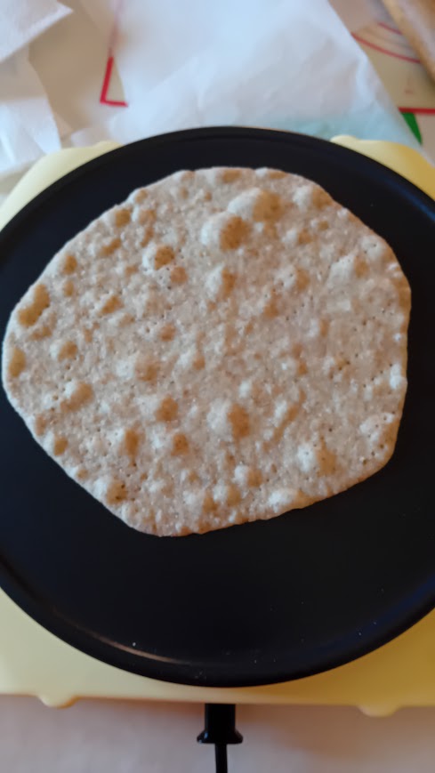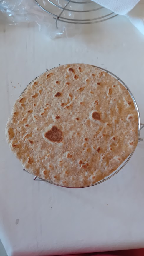 Quando risulterà calda adagiate una piadina e dopo qualche secondo vedrete apparire delle bolle in superficie che dovete forare con i rebbi di una forchetta.