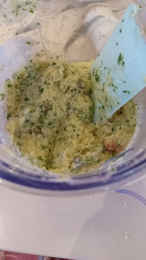 Tritate il tutto e solo ora aggiungete i capperi e mescolate accuratamente.